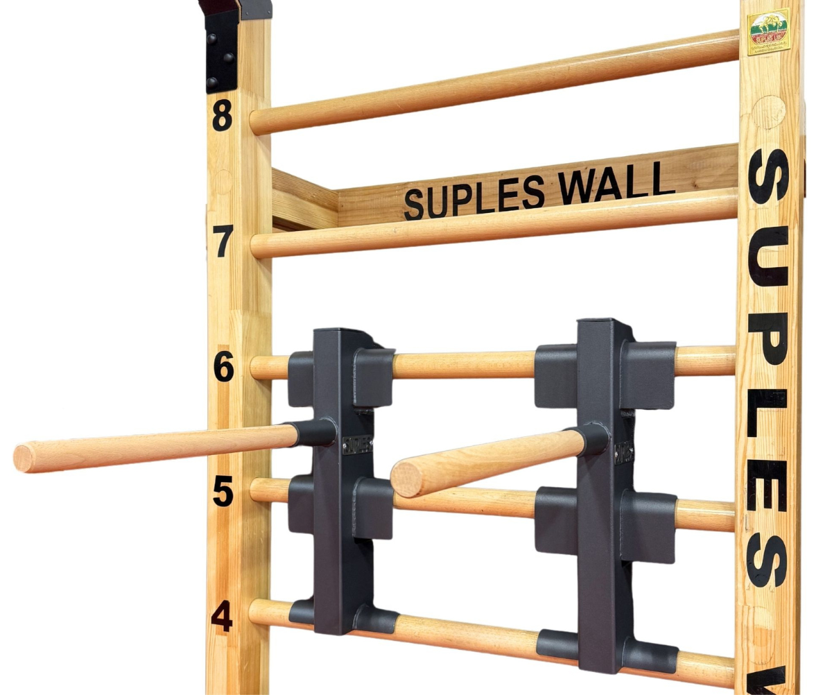 The Suples WALL DIP BAR is designed to be mounted directly to the Suples Wall. The training allows you to do regular dips or supported dips with your feet still on the floor. The Dip Bar provides great chest, shoulder, and abdominal training. The WALL DIP BAR is made to accommodate athletes with different shoulder widths. Each athlete can easily set the Dip Bar to the desired shoulder & chest width. Quickly & easily attaches and detaches from the Suples Wall!
